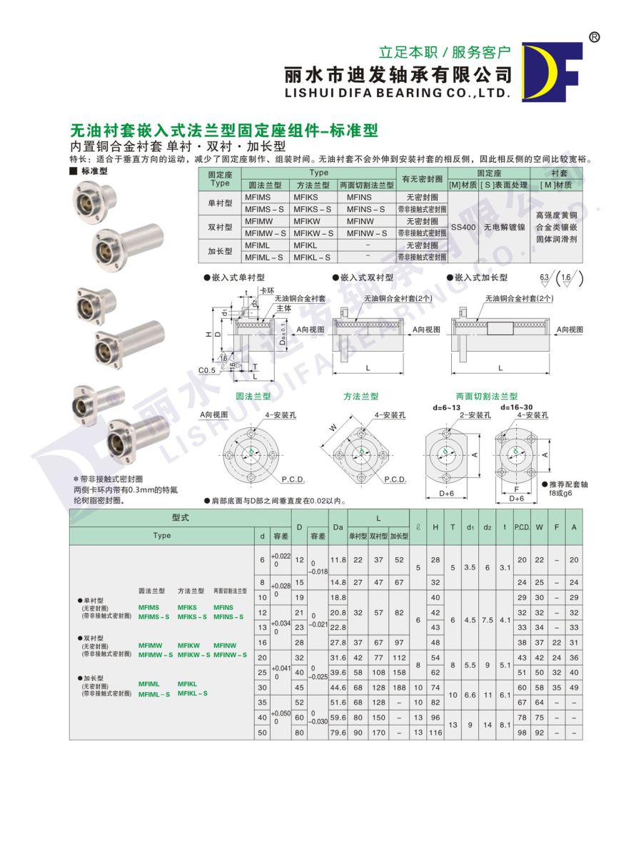 無油襯套嵌入式法蘭型固定座組件-標準型