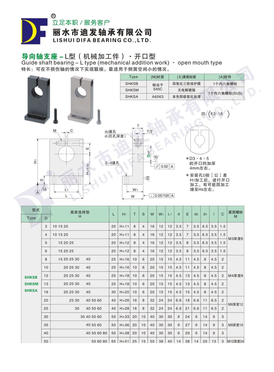 導向軸支座-L型(機械加工件)·開口形